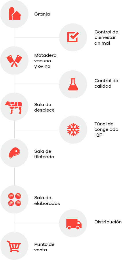 Disposem d'un escorxador de boví de 6.518 m2 amb capacitat per sacrificar 1.600 animals setmanals, i un altre escorxador d'oví amb capacitat per al sacrifici de 1.000 caps setmanals.